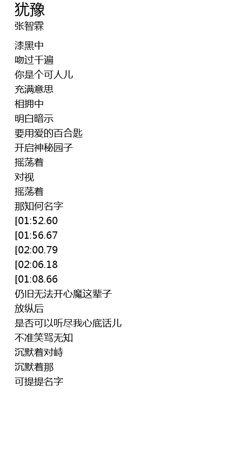 | [02:21.53][01:56.67][00:54.64] | 可愿意都不要知 |