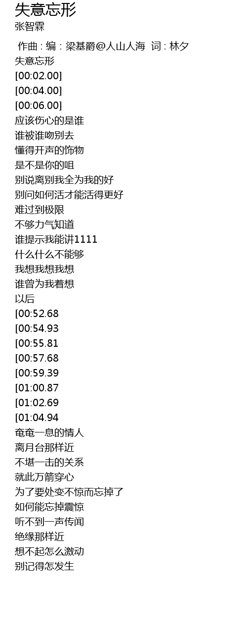 | [00:00.00] | 作曲 : 编:梁基爵@人山人海 词 : 林夕 |