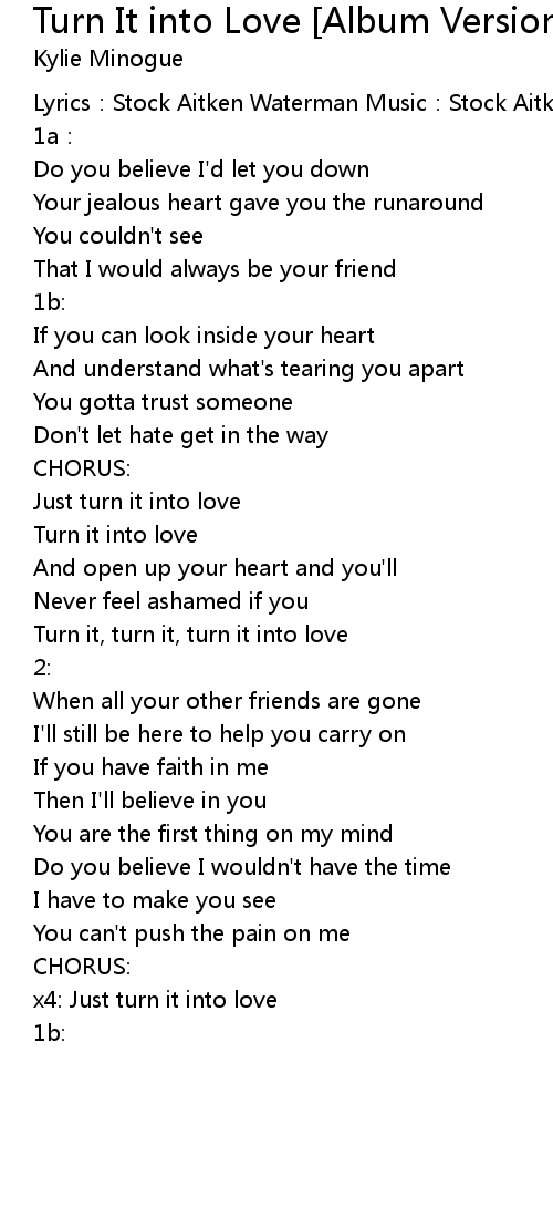 | Turn it, turn it, turn it into love | |
