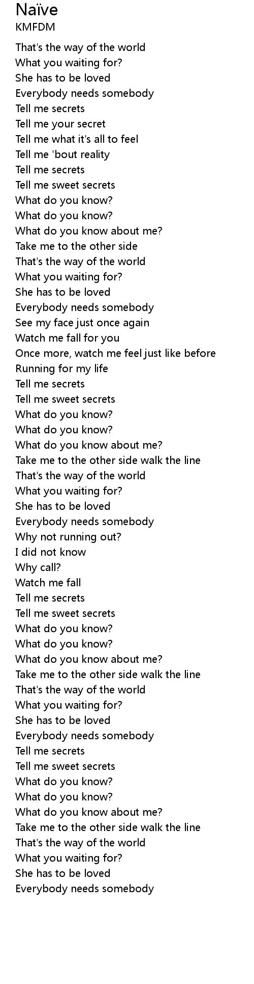 | Everybody needs somebody | |