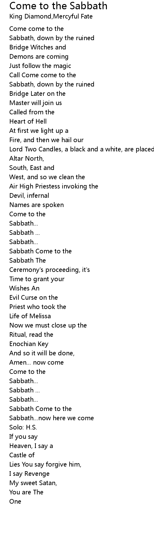 Sabbath Come to the |