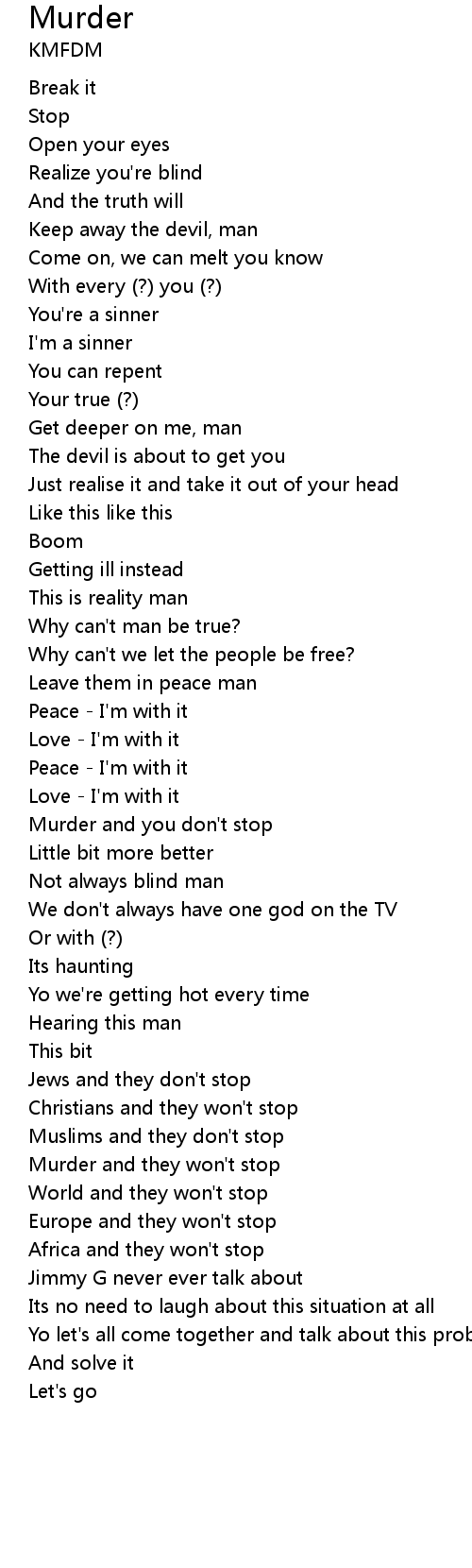 | Murder and you don't stop | |