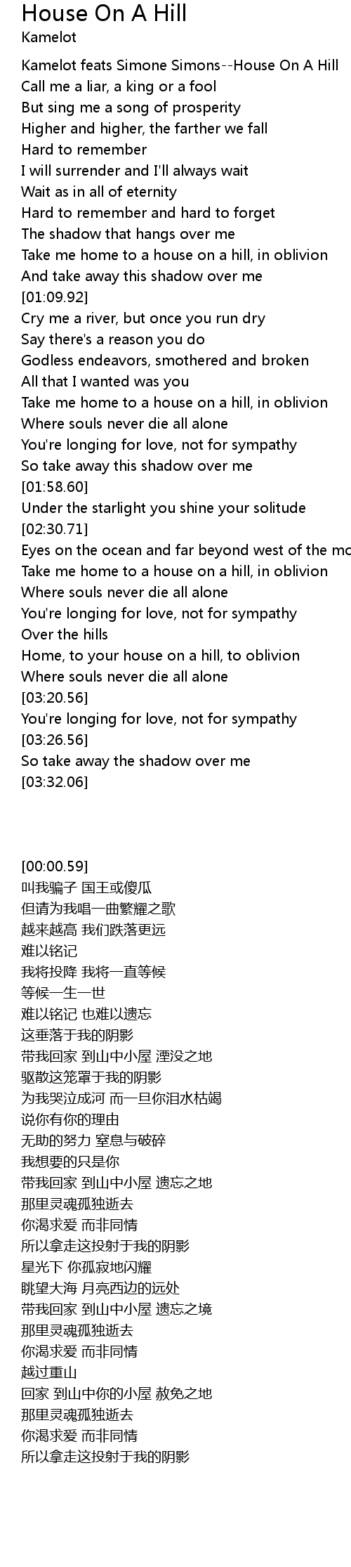 Kamelot feats Simone Simons--House On A Hill |