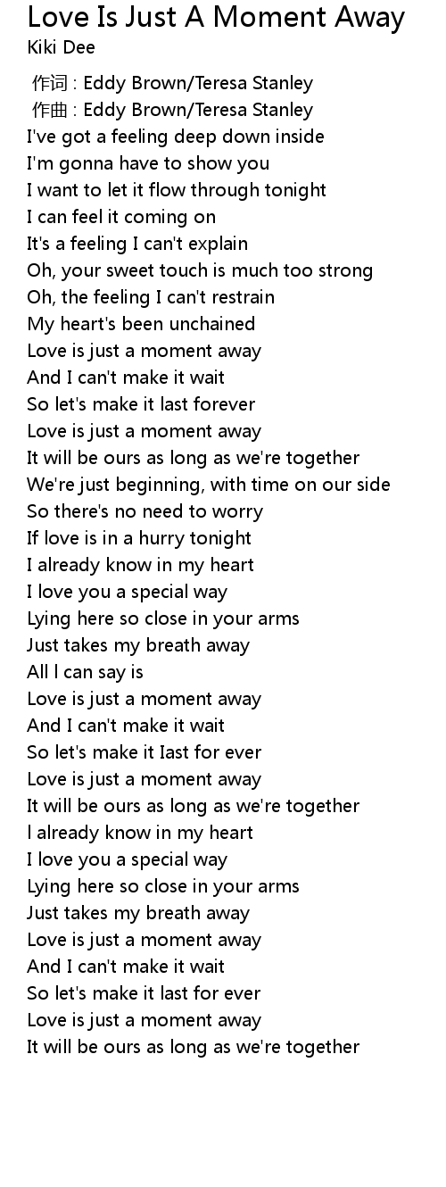 | [01:47.711] | Love is just a moment away |