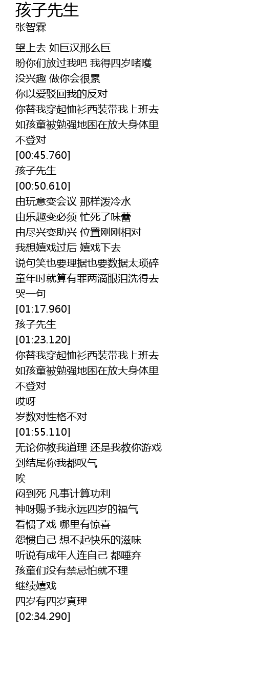 | [02:31.780] | sì suì yǒu sì suì zhēn lǐ |