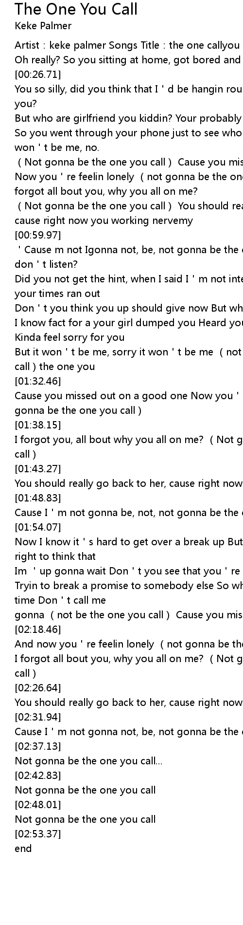 | [00:00.41] | Artist: keke palmer Songs Title: the one callyou |