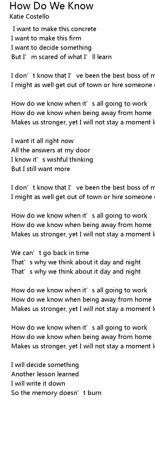 | Song | How Do We Know |