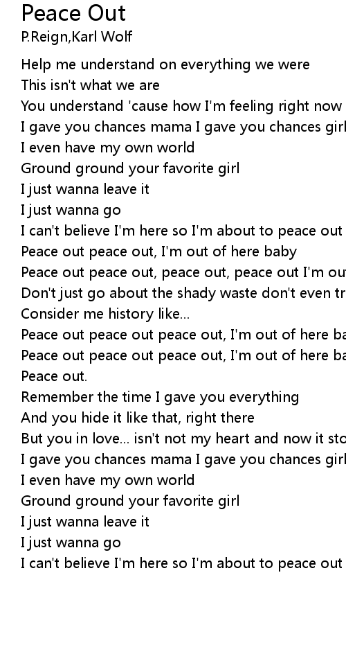 | [00:42.71] | Peace out peace out, peace out, peace out I'm out of here baby. |