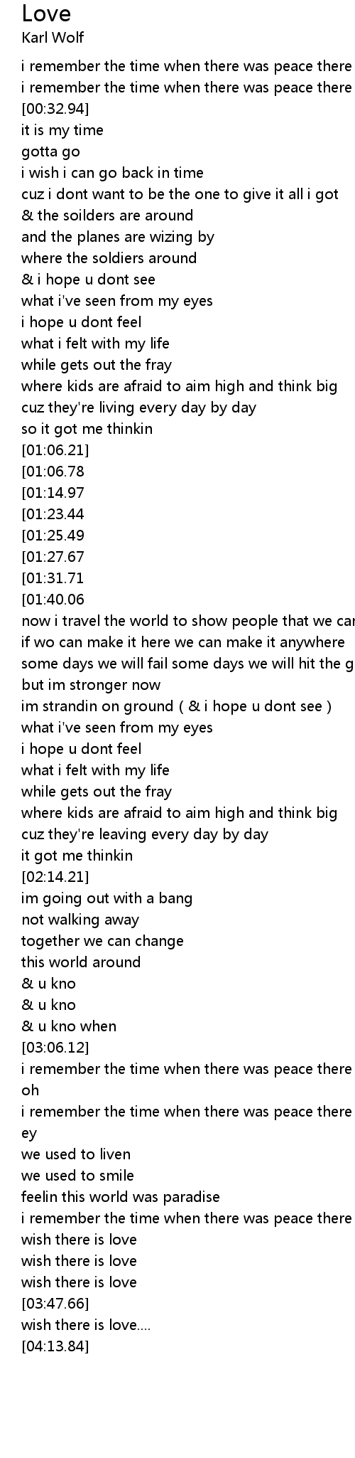 | [02:39.85][01:31.71] | i remember the time when there was peace there was love |