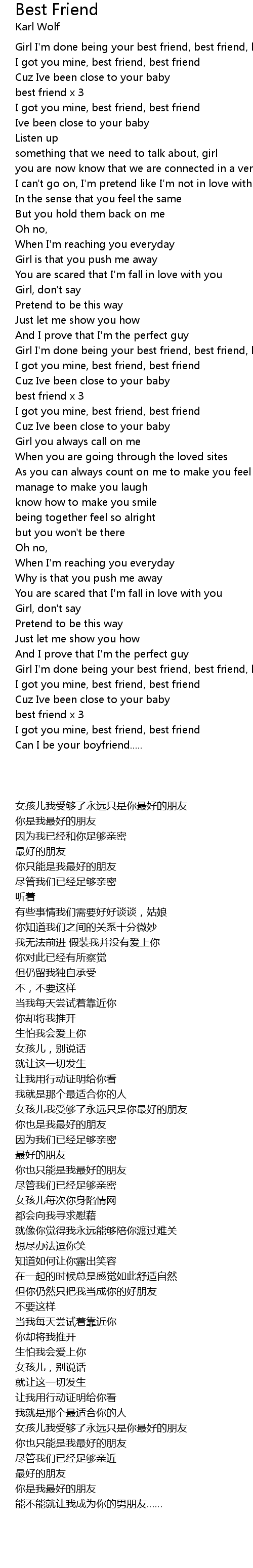 | [00:08] | Girl I'm done being your best friend, best friend, best friend |