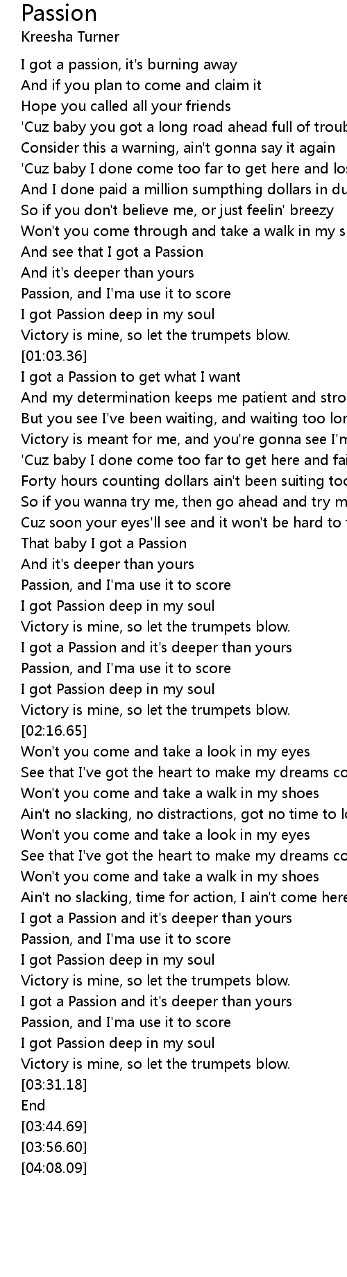 | [03:00.65] | I got a Passion and it's deeper than yours |