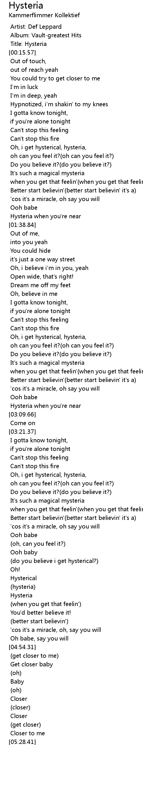 Oh, i get hysterical, hysteria, |