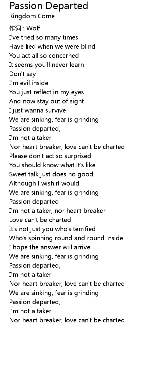 | Passion departed, | |