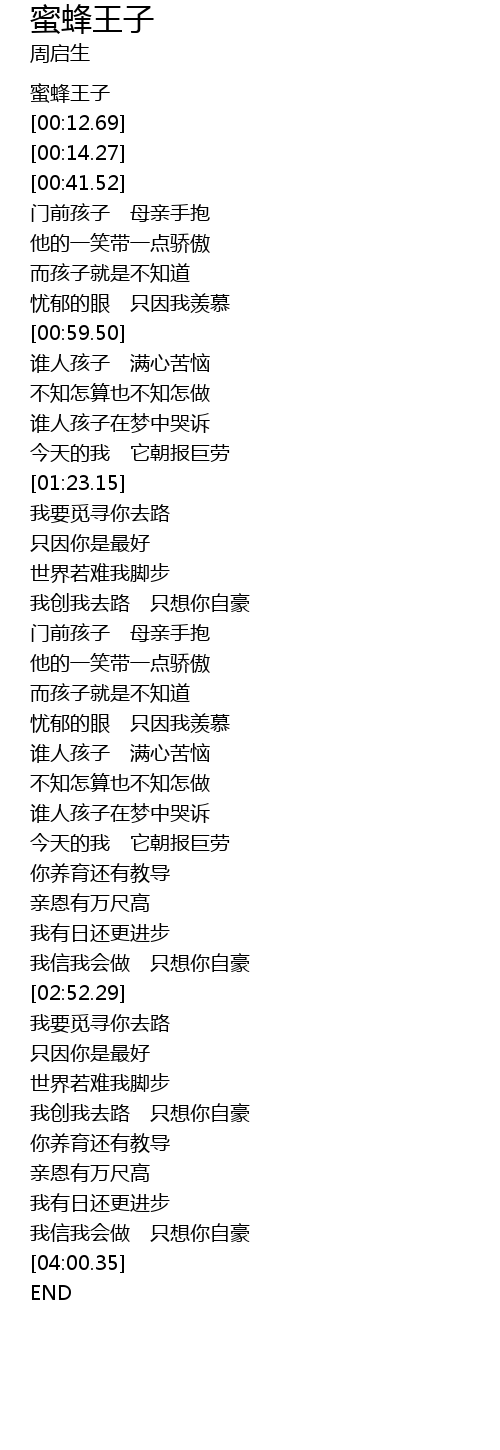 | [00:00.65] | 蜜蜂王子 |