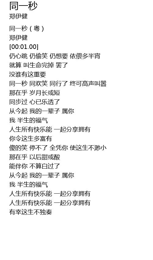 | [01:16.00] | 人生所有快乐能 一起分享拥有 |