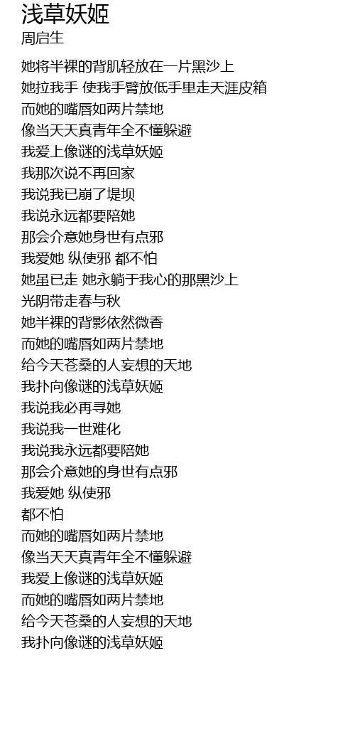 | [03:53.990] | 而她的嘴唇如两片禁地 |