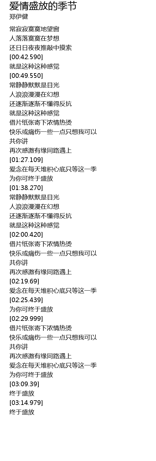 | [02:58.469] | 爱念在每天堆积心底只等这一季 |