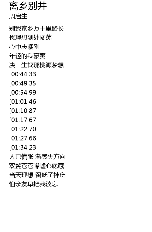 | [02:04.60][00:44.33] | 别我家乡在天际翱翔 |