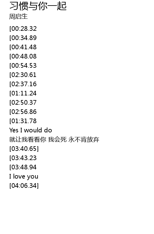 | [02:13.85][00:41.48] | 习惯与你一起 晨昏都要一起 |