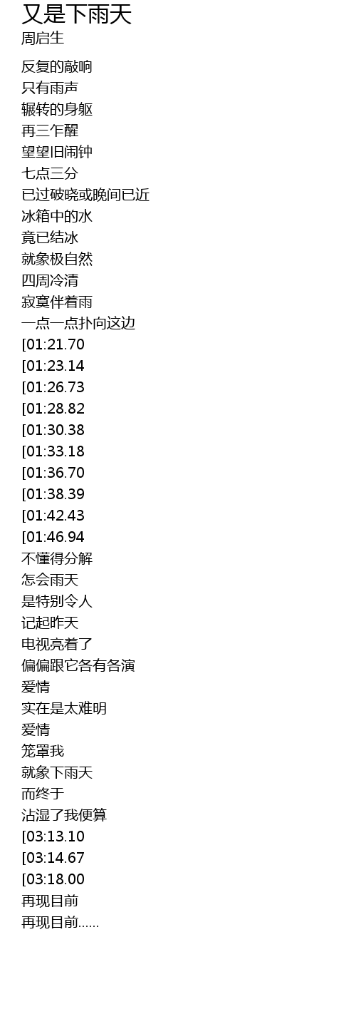 | [02:28.09][01:33.18] | 又是下雨天 |