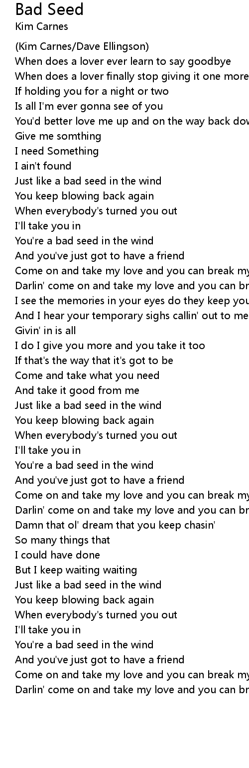 Just like a bad seed in the wind |