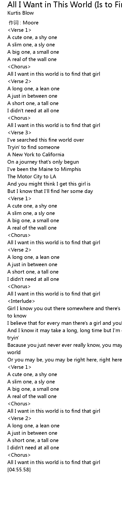 | [02:49.22] | Girl I know you out there somewhere and there's one thing I want you to know |