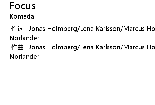 | [00:00.000] | 作曲 : Jonas Holmberg/Lena Karlsson/Marcus Holmberg/Mattias Norlander |