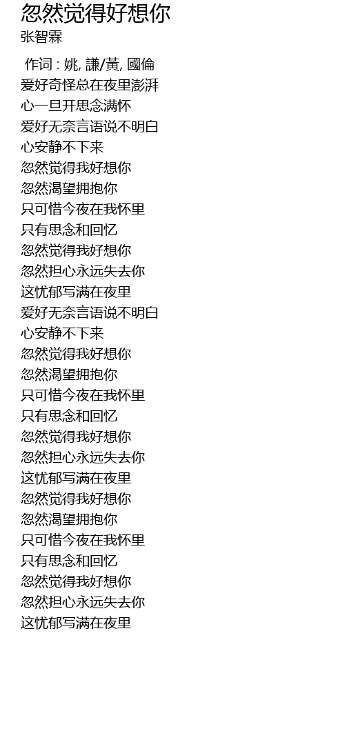 | [02:43.81] | hū rán jué de wǒ hǎo xiǎng nǐ |