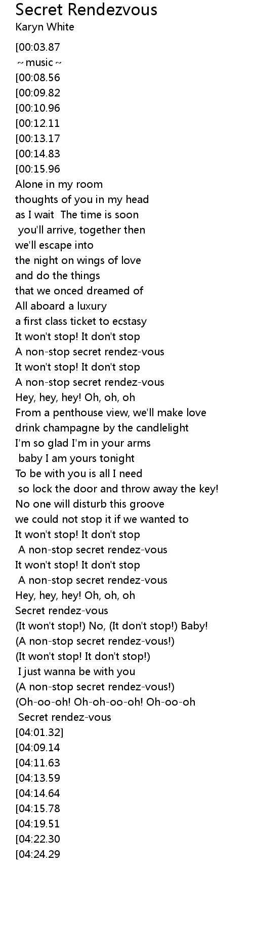 | [01:22.29] | A nonstop secret rendezvous |