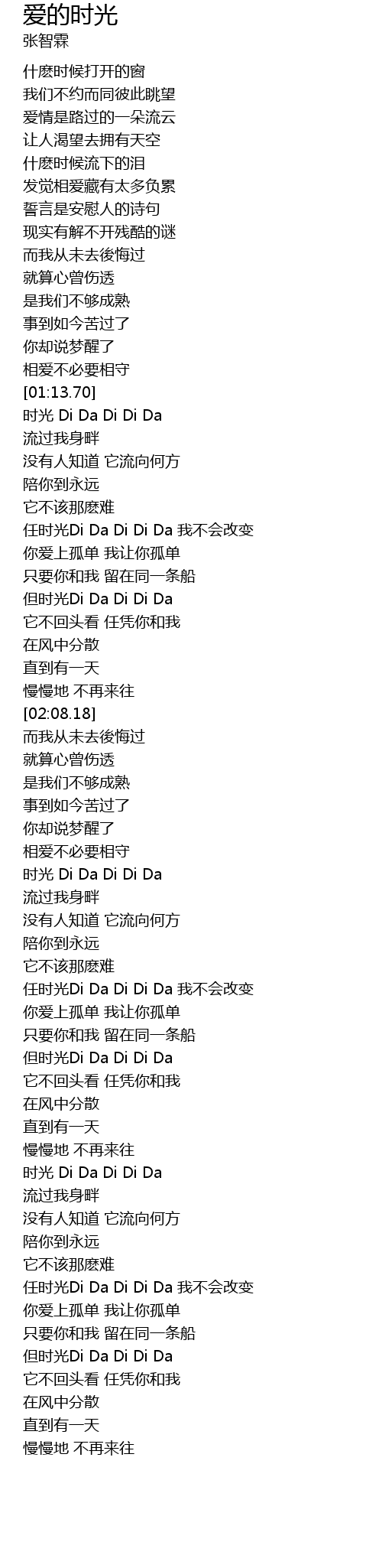 | [03:51.96] | 时光 Di Da Di Di Da |