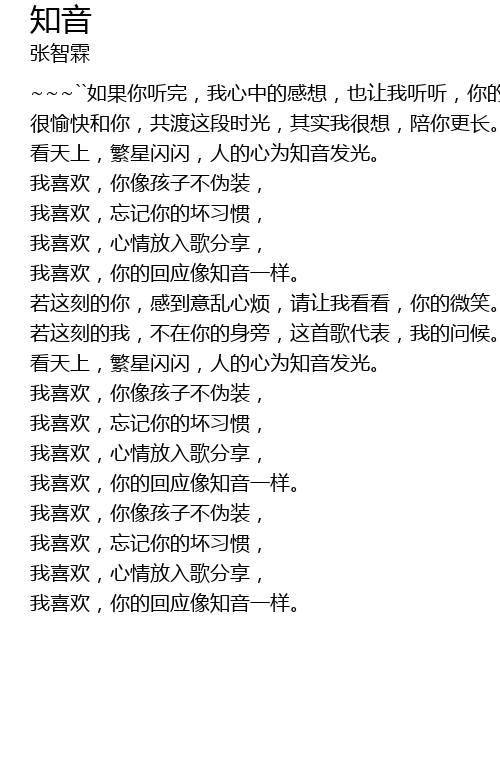| [00:18.56] | ~~~``如果你听完,我心中的感想,也让我听听,你的想法。 |