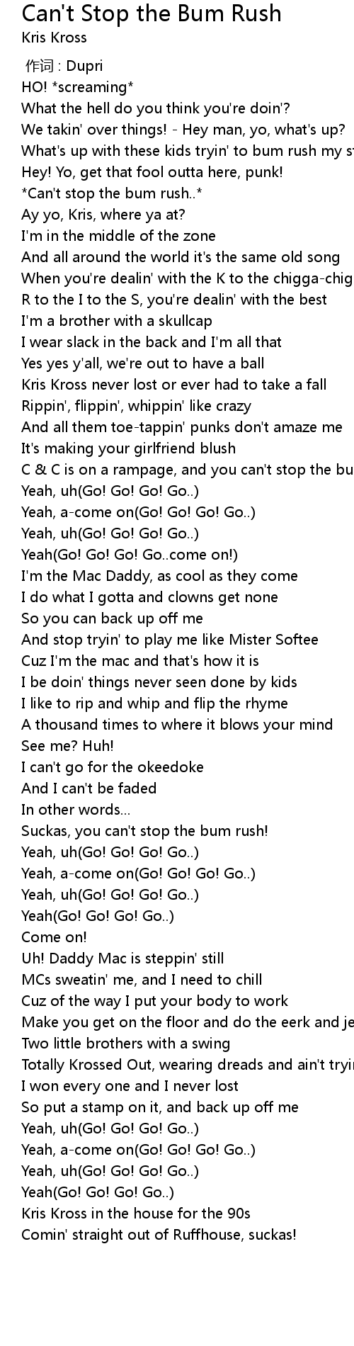 | [00:13.86] | Can' t stop the bum rush.. |