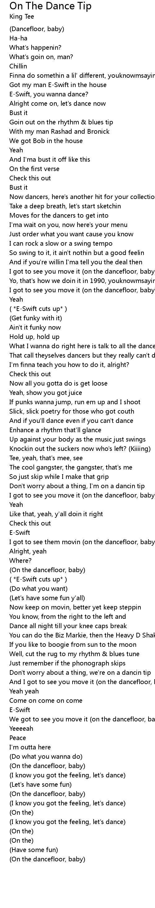 On The Dance Tip Lyrics