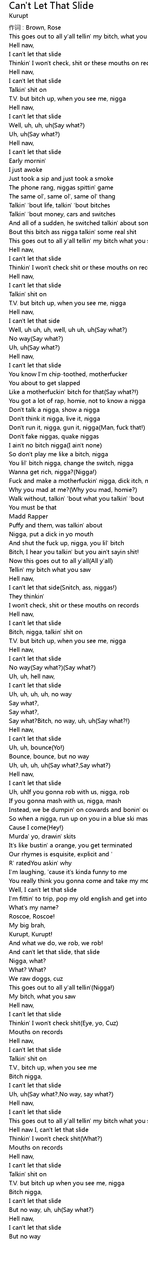 | I can't let that side(Snitch, ass, niggas!) | |