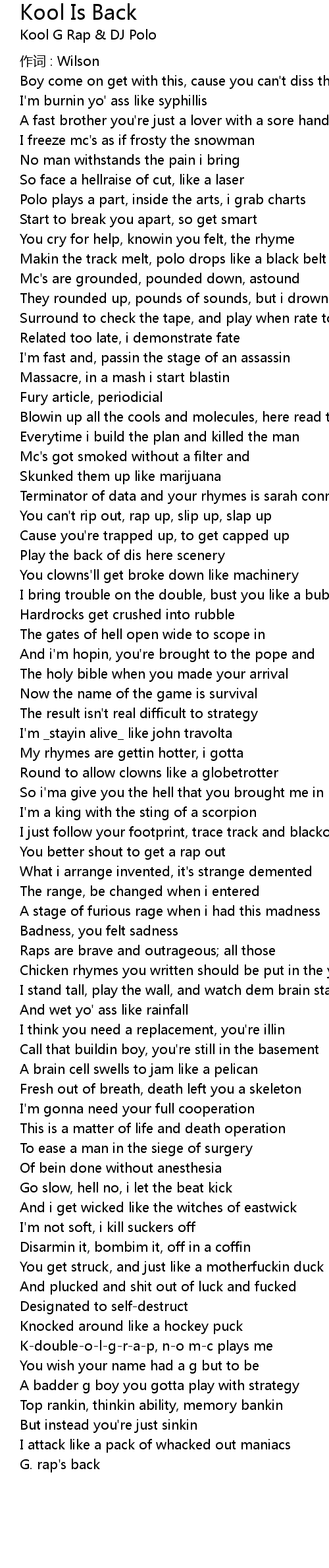 | Artist | Kool G Rap & DJ Polo |