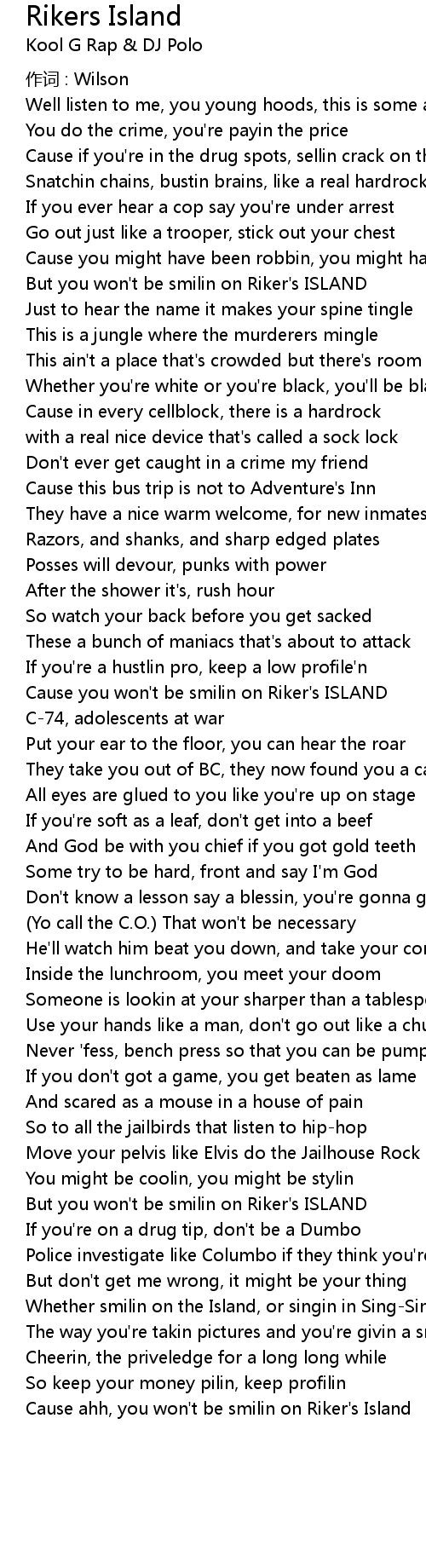 | Cause ahh, you won' t be smilin on Riker' s Island |