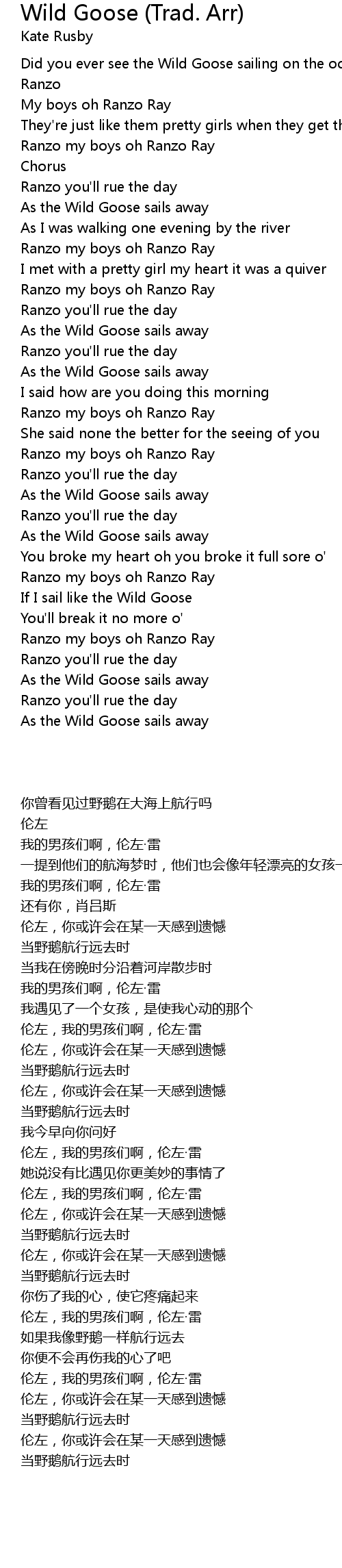 [00:13.430] Did you ever see the Wild Goose sailing on the ocean