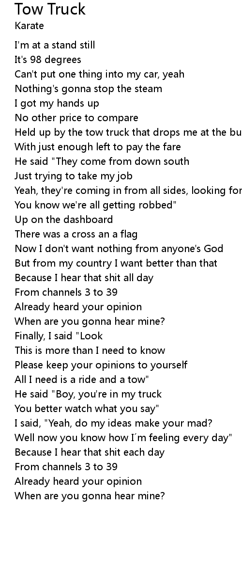 | All I need is a ride and a tow" | |