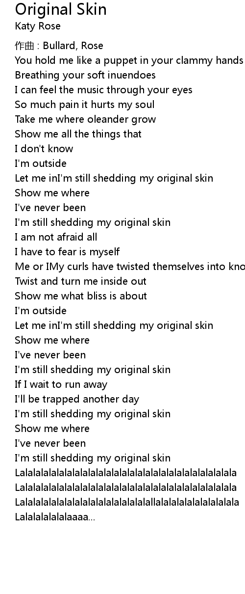| Let me inI' m still shedding my original skin | |