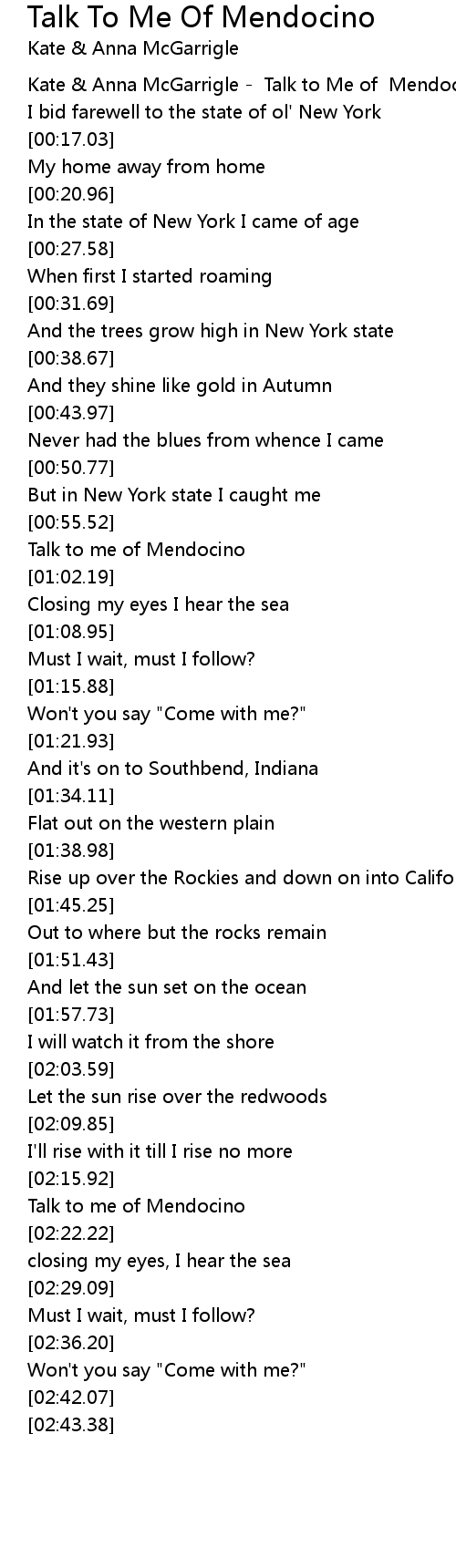Talk to me of Mendocino |