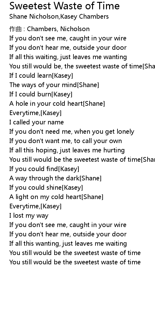 | You still would be, the sweetest waste of time Shane | |