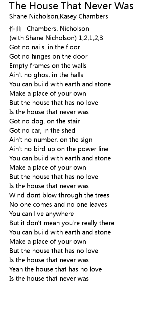 | Song | The House That Never Was |