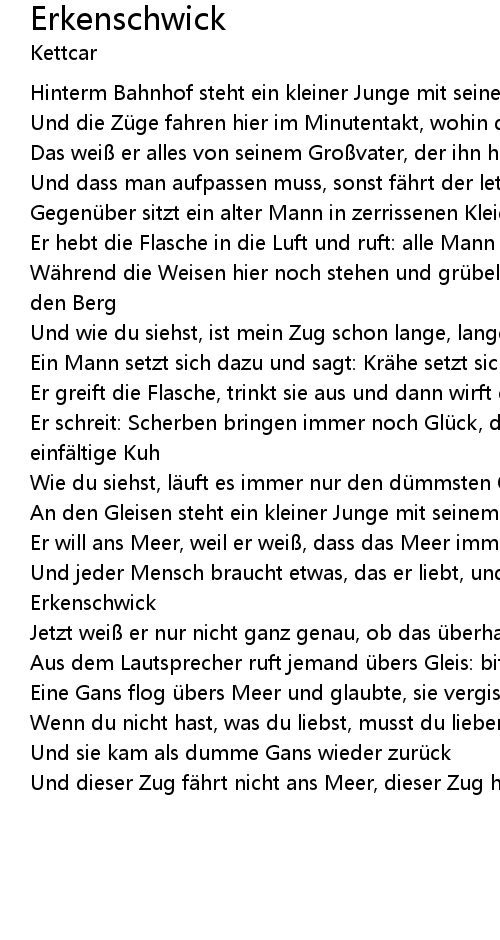 | Und dieser Zug f hrt nicht ans Meer, dieser Zug hier f hrt nach Erkenschwick |
