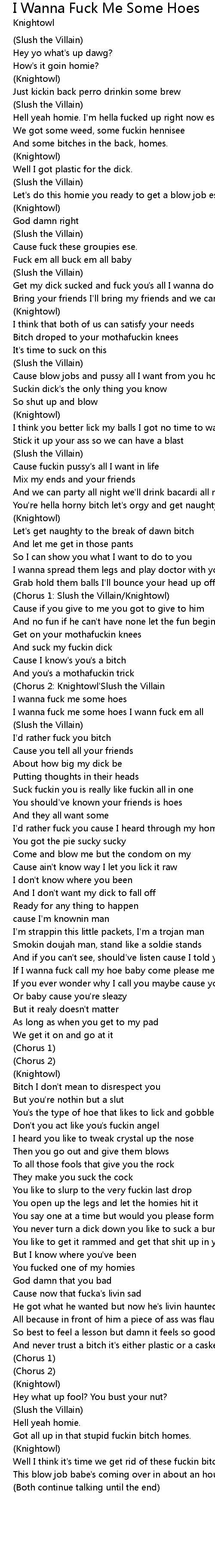I Wanna Fuck Me Some Hoes Lyrics