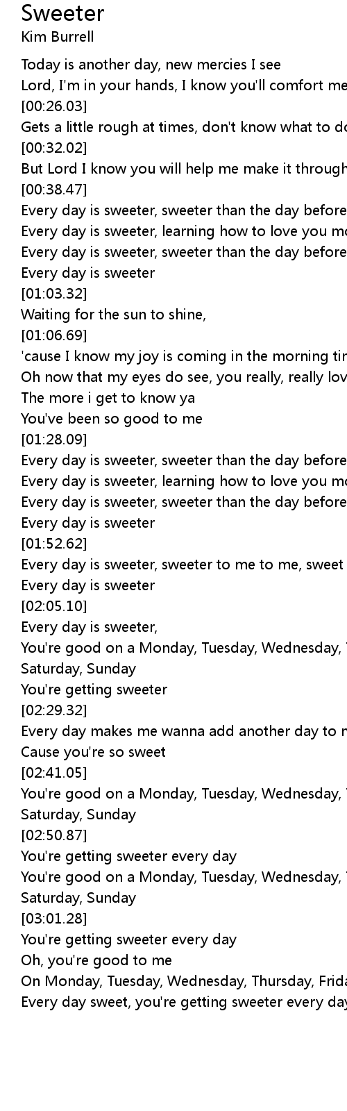 Every day is sweeter, sweeter than the day before |