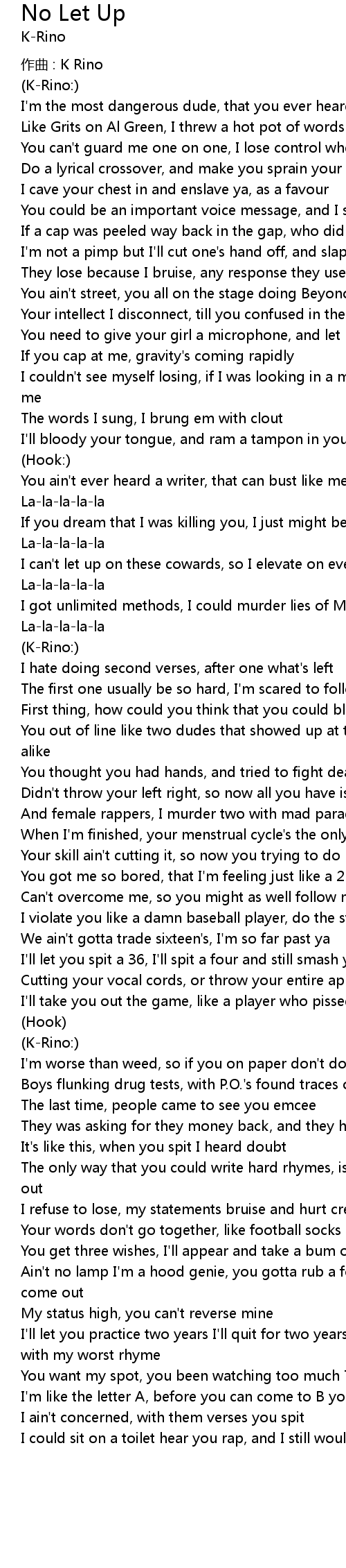 | Song | No Let Up |