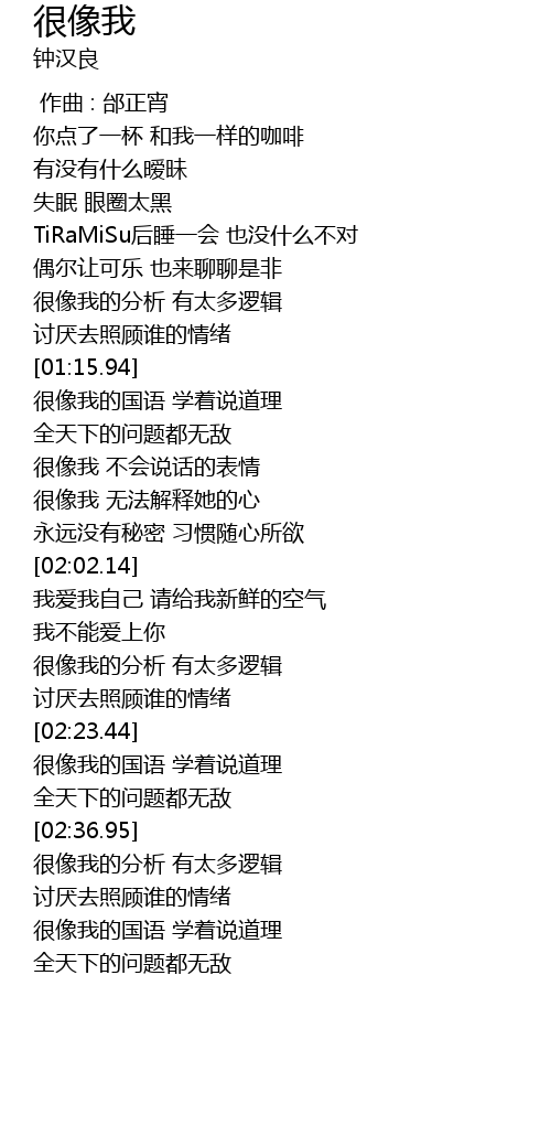 | [00:00.00] | 作曲 : 邰正宵 |