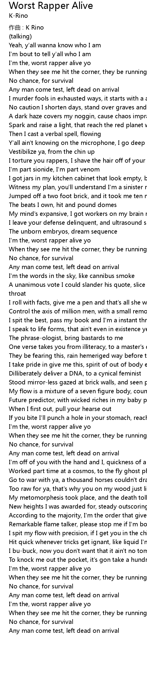 | I' m the, worst rapper alive yo | |