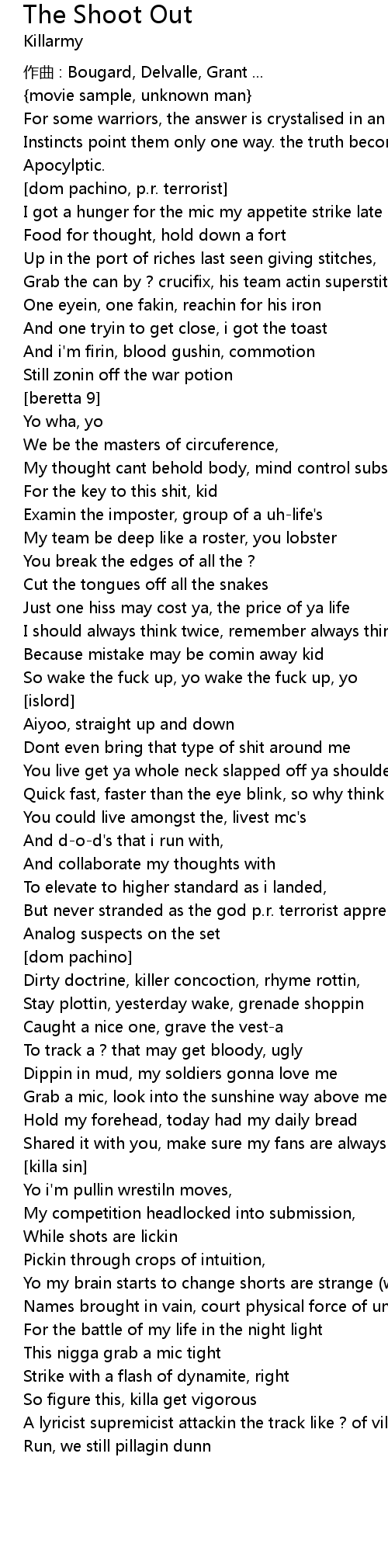 | Dirty doctrine, killer concoction, rhyme rottin, | |