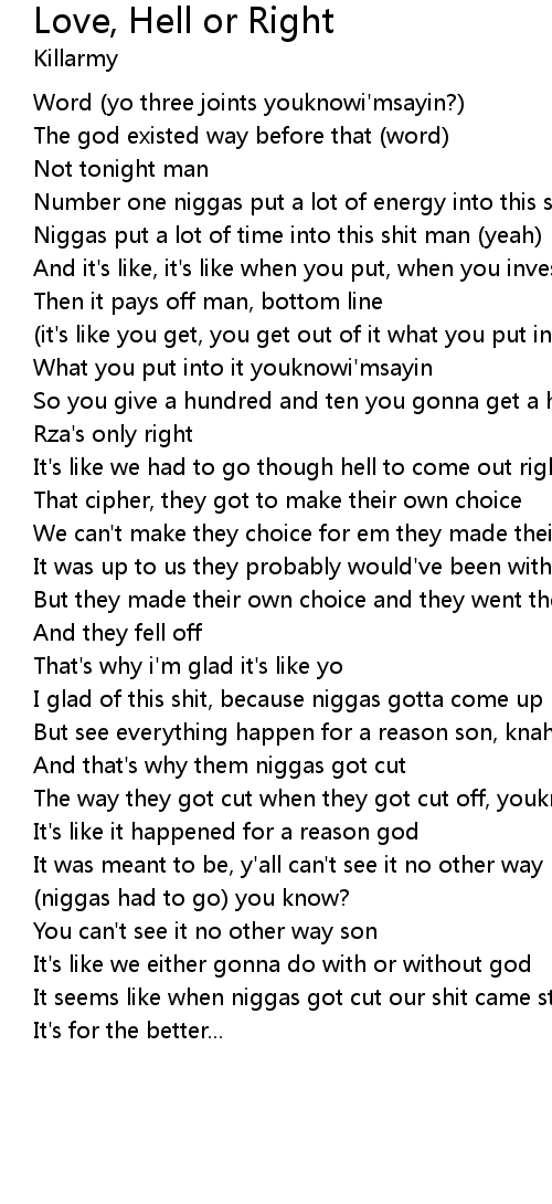 Song Love, Hell or Right